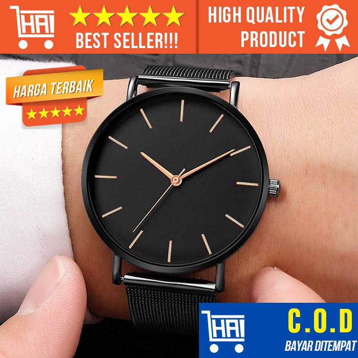 Jual Jam Tangan Rantai Hitam Simple Analog Pria Murah Tali Stainless Steel Premium Elegan Limited Cod Shopee Indonesia